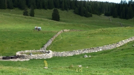 Chaque chalet a un ou plusieurs enclos fermés avec des murs de pierres.