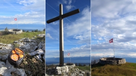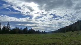 Matinée chargée : cours de BodyStep pour moi et intervention au bureau de Stefano… Nous nous retrouvons à la maison à midi et Stefano me dit : eat when you can, hike when you can. Ça me va. Le ciel est bleu avec des nuages d’altitude, un peu de vent, mais une douceur agréable. Nous partons pour Longirod, avec comme objectif de monter à La Neuve par Les pastilles vertes, un sentier aménagé par des locaux.