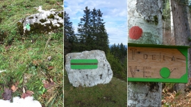 Et le pourquoi du titre du poste… Dernièrement, nous avons découvert, lors d’une descente du Crêt de la Neuve, un peu par hasard, un sentier marqué de pastilles vertes (3).