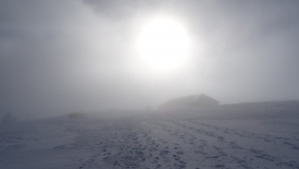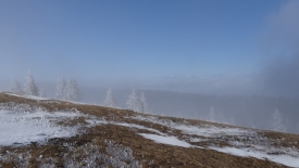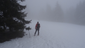 Au bas de la descente, sans surprise, nous retrouvons le brouillard.