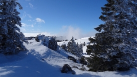 Nous nous arrêtons donc au couvert, en contrebas du point géodésique du Mont Tendre.