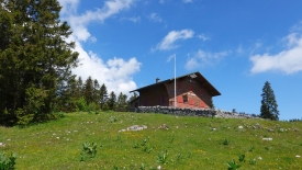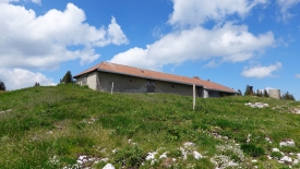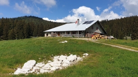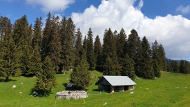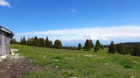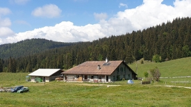 Au chalet du Pré de Ballens, un couple finit son repas, sous une tonnelle toute récente. Le bois est encore clair. A notre grand regret ils nous annoncent que M’sieur Claude ne pourra disposer de son chalet pour cause de travaux. Zut ! Nous qui nous réjouissions d’aller discuter avec lui.