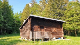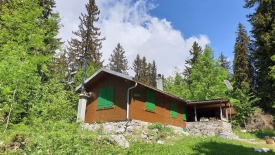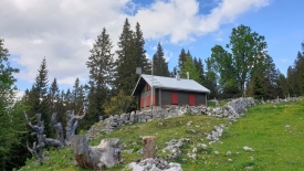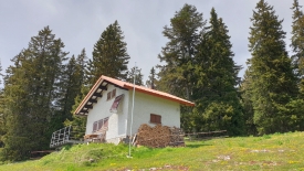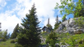Stefano m’a promis le pique-nique à Druchaux. Mais avant, il y a ce petit chalet privé sans nom. Nous sommes étonnés qu’il n’ait pas de volets. Il est joli, mais manque cruellement de surface plane aux alentours. Il n’a pas de terrasse et donc impossible d’y installer une table. Dommage.