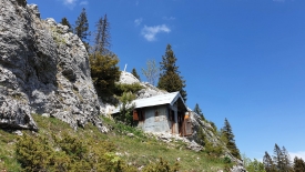 Nous faisons un petit détour par la cabane du Rocher. La porte est ouverte et des voix résonnent.
