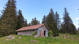 Du Pré de Mollens, nous suivons une piste forestière que nous empruntons souvent en tant que point de départ pour monter au Mont Tendre. C’est une route qui s’arrête au milieu de nulle part. Souvent, nous la quittons à mi-chemin. Ou, arrivés à son extrémité, nous partons vers le nord, vers le bois des Fayes. Aujourd’hui, nous partons à l’opposé. Nous arrivons ainsi à la cabane des Yarpes. Stefano rit de ma surprise.