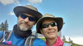 Alors que nous longeons le mur à proximité du Crêt de Mondisé, une tache orange attire notre regard. Un sac de couchage. Un couple dedans. Une tente dressée, non loin. Nous avons bien l’impression de les avoir dérangés, si vous voyez ce que je veux dire ! Et encore, heureusement que nous papotions. Ils ont dû nous entendre venir de loin. Nous faisons un grand détour, histoire de ne pas plus les embarrasser. Eux qui pensaient avoir trouvé LE coin tranquille du Jura. C’était sans compter sur les Two Swiss Hikers. Nous sommes hilares.