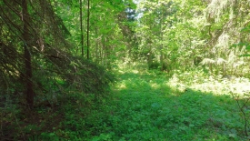 Nous suivons une vieille route qui part dans le bois. Une clôture constituée de 3 fils de fer barbelés solidement fixés nous arrête quelques minutes. Heureusement, nous trouvons deux fils un peu moins tendus que les autres et arrivons à nous glisser entre les deux. A condition d’enlever notre sac à dos.