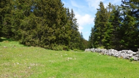 Nous suivons le mur qui délimite le côté nord du Pré de Ballens.