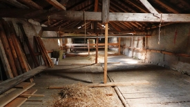 En arrivant à Druchaux, nous constatons très vite que l’amas de planches bancales placé sous l’avant toit à disparu.