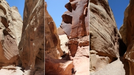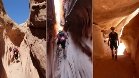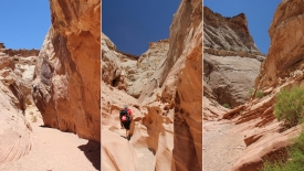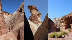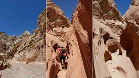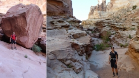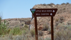 Nous venons de terminer la boucle de Ding and Dang Canyons. Il est 12h30 et et puisqu’il nous reste du temps et de l’énergie, nous décidons d’enchaîner une autre paire de canyons: Bell Canyon et Little Wild Horse Canyon.