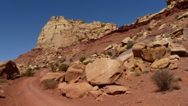 De là, nous rejoignons le wash nous emmène à la piste Behind the Reef, qu’il nous faudra suivre sur quelques kilomètres.