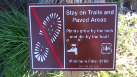 Tous les 5 mètres des panneaux rappellent de ne pas marcher en dehors du sentier.
