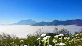 À proximité de l’un d’eux, le sol est recouvert de fleurs de trèfle qui embaument l’air.
