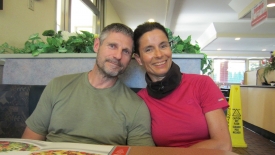 Lui, aperçoit le drapeau suisse sur mon sac à dos et s’exclame : Are you Swiss? Nous entamons une conversation. Karl est un suisse-allemand établi depuis 50 ans ici aux US. Bientôt, sa femme, Ellie, une locale, se joint à la conversation.