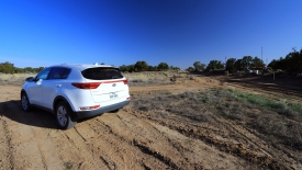 Nous voilà donc partis sur la Highway 550. Notre point de repère est constitué de 4 ou 5 antennes. Nous quittons la route goudronnée pour la piste, en très bon état. Les antennes sont visibles, sur la droite.