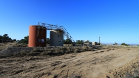 Nous nous garons à côté de réservoir. Mieux vaut ne pas savoir ce qu’il y a dedans, même si nous en avons quasi la certitude : du pétrole brut.
