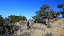 Nous partons vers le nord, on longeons le bord du rim. Ce petit arbre est bien joli mais ce n’est pas par là que nous descendrons.