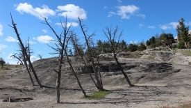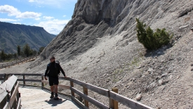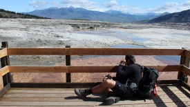 Nous parcourons à pied les quelques 500 mètres qui séparent l’hôtel du parking des Mammoth Hot Springs, d’où part aussi le sentier vers les Beaver Ponds.