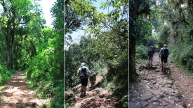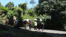 Ici, des porteurs qui commencent la montée, via un sentier parallèle.