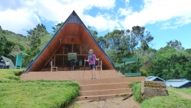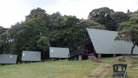 Et voici les huts. Au premier plan, la hut principale, dans laquelle sont servis les repas.