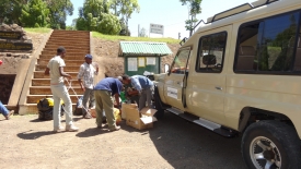 Nous arrivons « at the gate« . This is it ! Un collègue de Stefano nous a prévenu que ce serait un peu « bordélique » : c’est ici que les équipes se forment. Sauf que notre guide a l’habitude de travailler avec la même équipe de porteurs, équipe qui attend sagement la jeep au pied des escaliers.