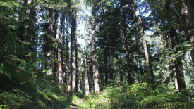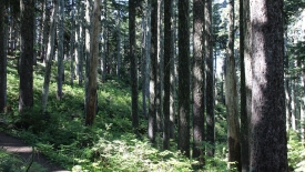 La forêt est principalement composée de sapins, pins et autres arbres de la famille des sapins et des pins. Par endroit, aucune végétation ne recouvre le sous-bois.