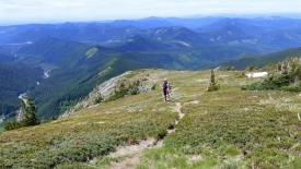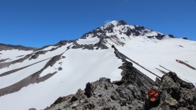 Nous suivons la crête – appelée Cathedral Ridge – et nous rapprochons du volcan.