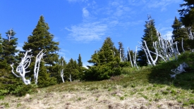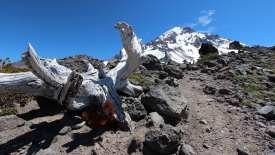 Des arbres morts nous rappellent les pentes du Mount St Helens. Trooooop beau !