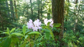 Nous rentrons à nouveau dans la forêt et réalisons qu’à certains endroits le sous-bois est composé de rhododendrons. C’est la première fois que nous en voyons à l’état sauvage.