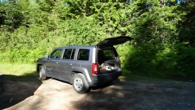 5 heures de vol au total. Arrivés à destination, nous traversons la rue pour aller louer la voiture. Nous n’avons pas eu le choix, un seul SUV disponible : ce sera donc une Jeep Patriot. Un petit tour au Walmart local afin d’acheter céréales, barres de protéines et Clif Bars, et nous voici sur la US-26 en route pour Sandy, puis Brightwood.