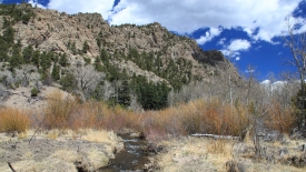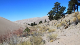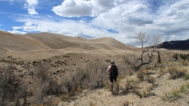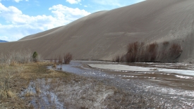 Bien que le sol reste sablonneux, nous somme maintenant à proximité de rochers. Fini les dunes… Omniprésent, le Medano Creek.
