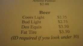 Nous choisissons d’aller dîner au Hungry Farmer Steakhouse et nous ne sommes pas déçus. D’autant qu’on nous demande nos IDs avant de nous servir notre bière.