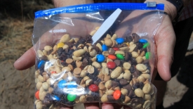 C’est l’heure de refaire le plein de calories. Nous tapons allègrement dans notre sachet de trail mix. Hum les M&Ms, qu’est-ce que c’est bon. Seul bémol : avec la chaleur, les M&Ms fondent, et nous sommes obligés d’utiliser une cuillère.