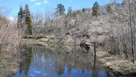 A 13h39, au km 12, nous faisons demi-tour. Notre langue de pré se jette dans une forêt dont les arbres sont en piteux état. La présence potentielle d’ours nous a un peu refroidis.