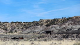 Devant nous, une étendue désertique qui là aussi pourrait se qualifier de pâturage, vu le nombre de traces de sabots et de bouses.