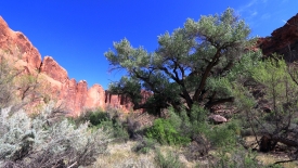 Nous repartons vers la voiture. Les rives du Kane Creek sont envahis par les tamaris.