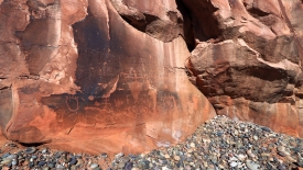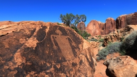 Le Moab Maiden Panel, un dessin représentant une forme anthropomorphique avec deux cercles qui pourrait représenter la poitrine d’une femme, sera la dernière visite de cette journée bien remplie.