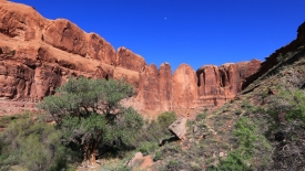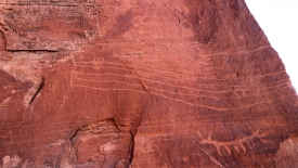 Nous montons sur un premier ledge où s’ouvre une sorte de plateau avant de nous hisser sur le second ledge (ouille les jambes, elles s’étaient déjà imaginées que la journée était finie) et arrivons bientôt au Moab Maiden Panel, parfois référencé comme The Moad Princess Panel.