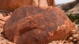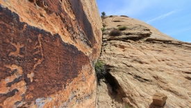 Sur la photo ci-dessous, deux choses à noter: des pétroglyphes et un moyen de monter sur le rim du canyon.