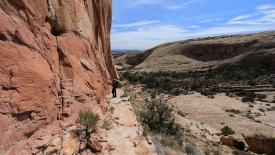 Stefano testera la montée sur le rim, il y a même des moki (encoches dans la roche) creusés aux endroits les plus raides.