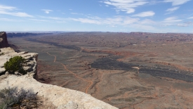 En bas, ce serpent de verdure n’est autre que le Comb Wash, que longe une piste, celle que nous avons suivie il y a quelques jours pour aller à Lower Fish Creek.