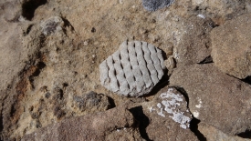 Trouvé au milieu de nulle part, dans une anfractuosité de la roche, ce petit bout de poterie nous interpelle. Il n’y a rien autour et il est vraiment isolé.