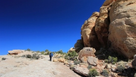 Même si nous sommes certains qu’une exploration poussée serait sans doute récompensée par quelques pétroglyphes, nous décidons de passer au prochain canyon, celui qui abrite Monarch Cave.
