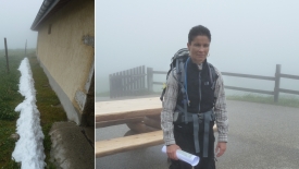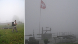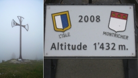 Après avoir échangé quelques mots avec un randonneur, nous décidons qu’il ne vaut pas la peine de monter au sommet du Mont Tendre car la visibilité est nulle.