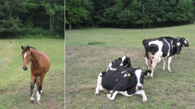 Puis par l’alpage de la Devent, où nous croisons un cheval et quelques vaches.