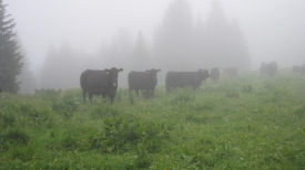 Nous croisons un troupeau de vaches peu amicales (si tant est que les vaches puissent exprimer de l’amitié …)