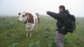 Vaine tentative d’établir un dialogue constructif sur la dure condition des vaches dans les alpages avec une représentante de la race bovine.