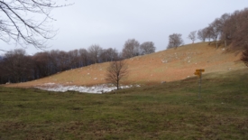 Nous sortons progressivement de la forêt et surtout des sentiers recouverts de feuilles. Je me relaxe un peu. Ces feuilles me stressent pas mal. Je n’aime pas poser les pieds à l’aveugle. La Capanna Pairolo est en vue.