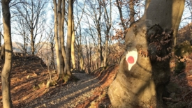 La première montée est la bienvenue. Elle se fait à un rythme rapide. Nous n’avons qu’une envie : nous réchauffer. Le sentier passe dans la forêt. Le sous-bois est impeccable. Les feuilles mortes recouvrent le sol.