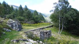 Il est presque 14h. Nous poursuivons notre descente et rencontrons d’autres vestiges d’alpages.